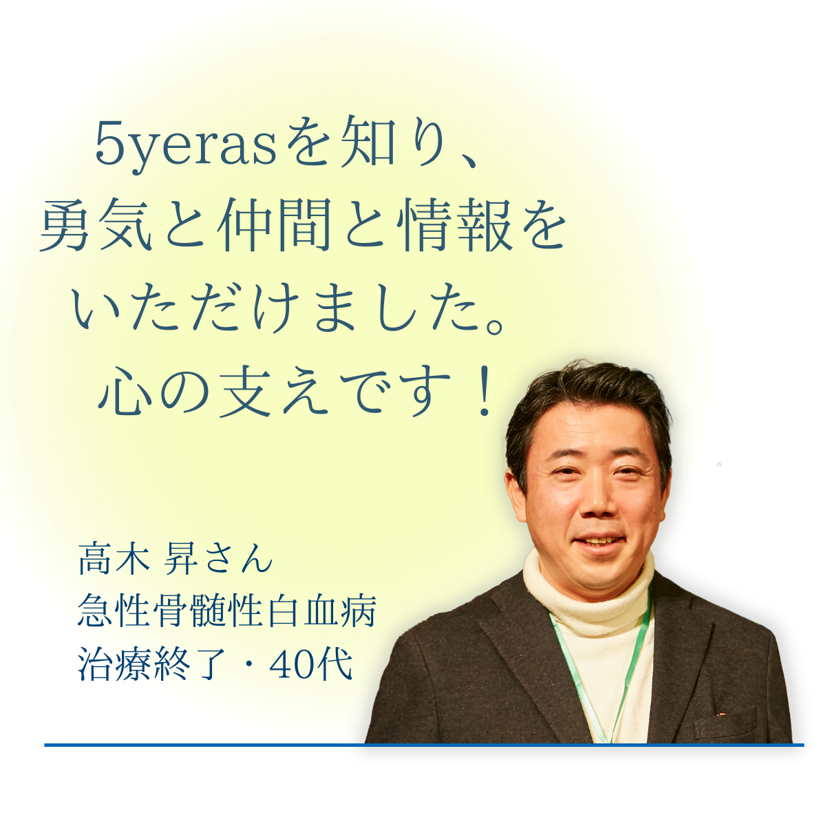 「毎回、5yerasのイベントに参加することを目標に治療を頑張っています。」